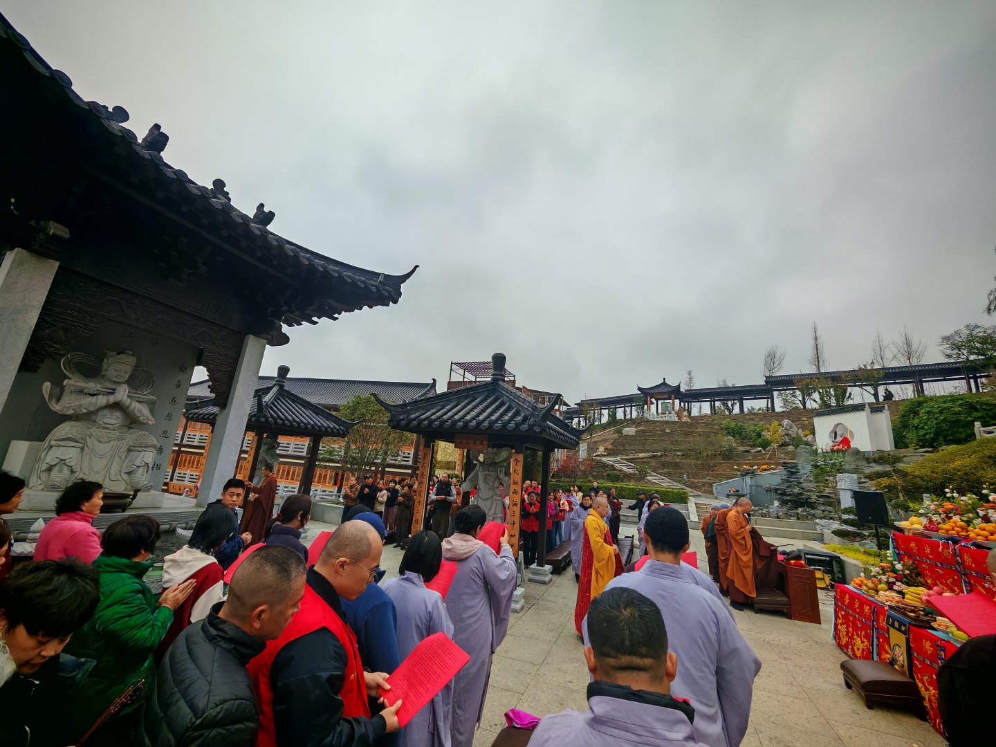 整个开光法会严格依照汉传佛教的仪轨之制圆满进行与完成,法会结束时一直阴沉的天空竟然一然放出了灿烂的阳光,由于周知的因缘,殊胜之过程就不再多报道了的哈