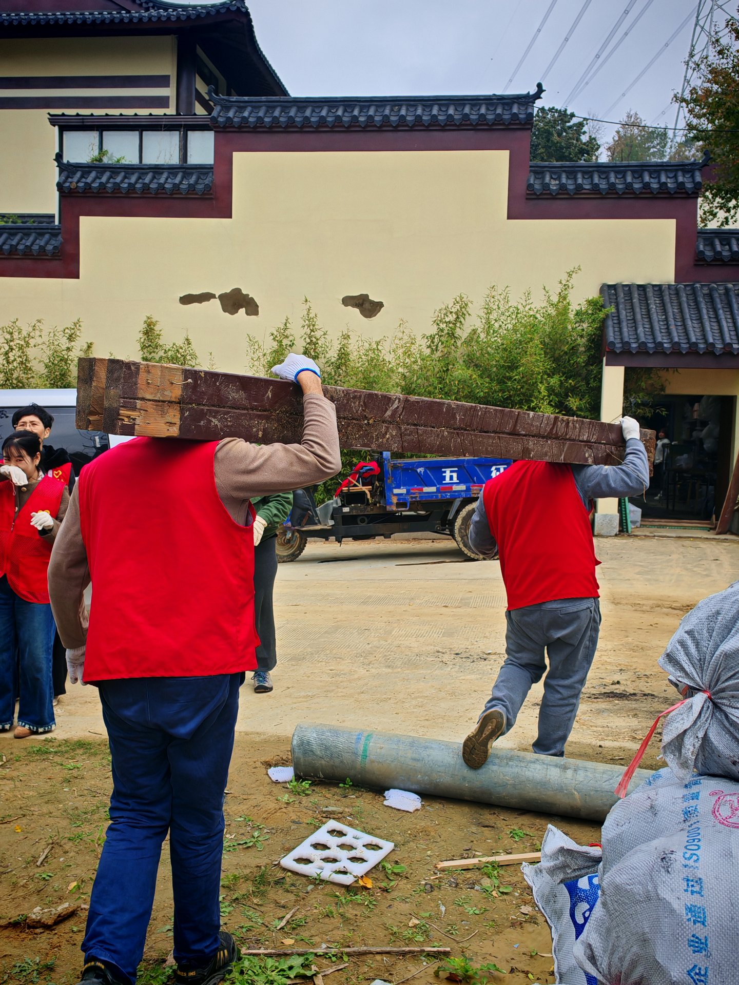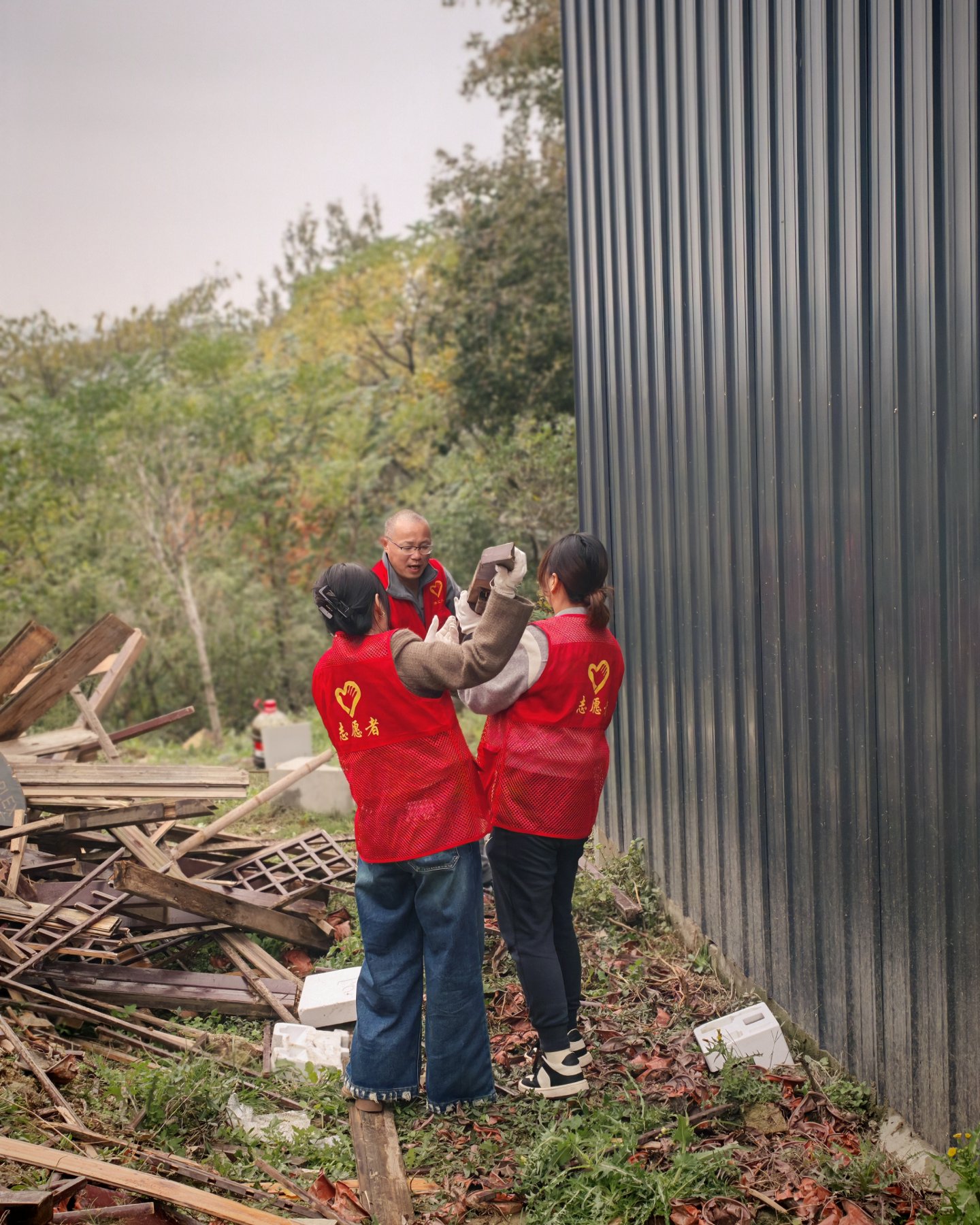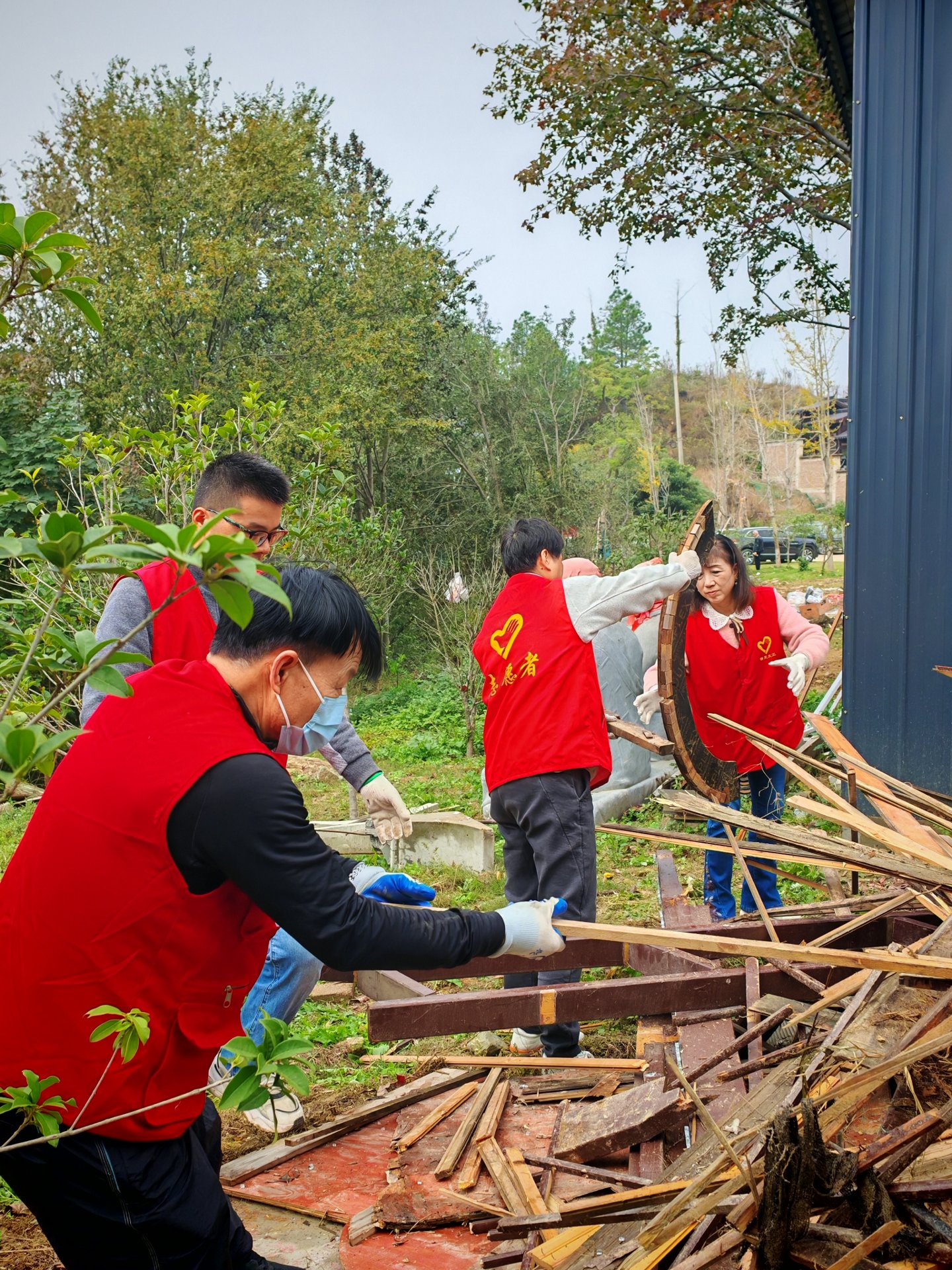 第一件事儿:清理杂木,不算繁重亦不复杂,唯注意木条上的钉子这等风险,没一个小时我们就轻松完成了