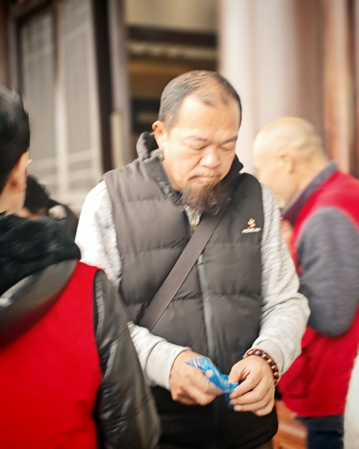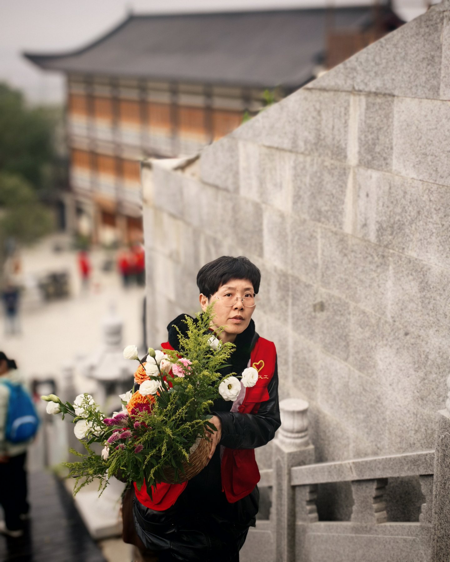 如此捧着供花回大殿的场景,正是出片的好时机,可惜人来人往的,台阶上我也一时很难站到一个好机位,于是只抢到了这么几张,哈哈