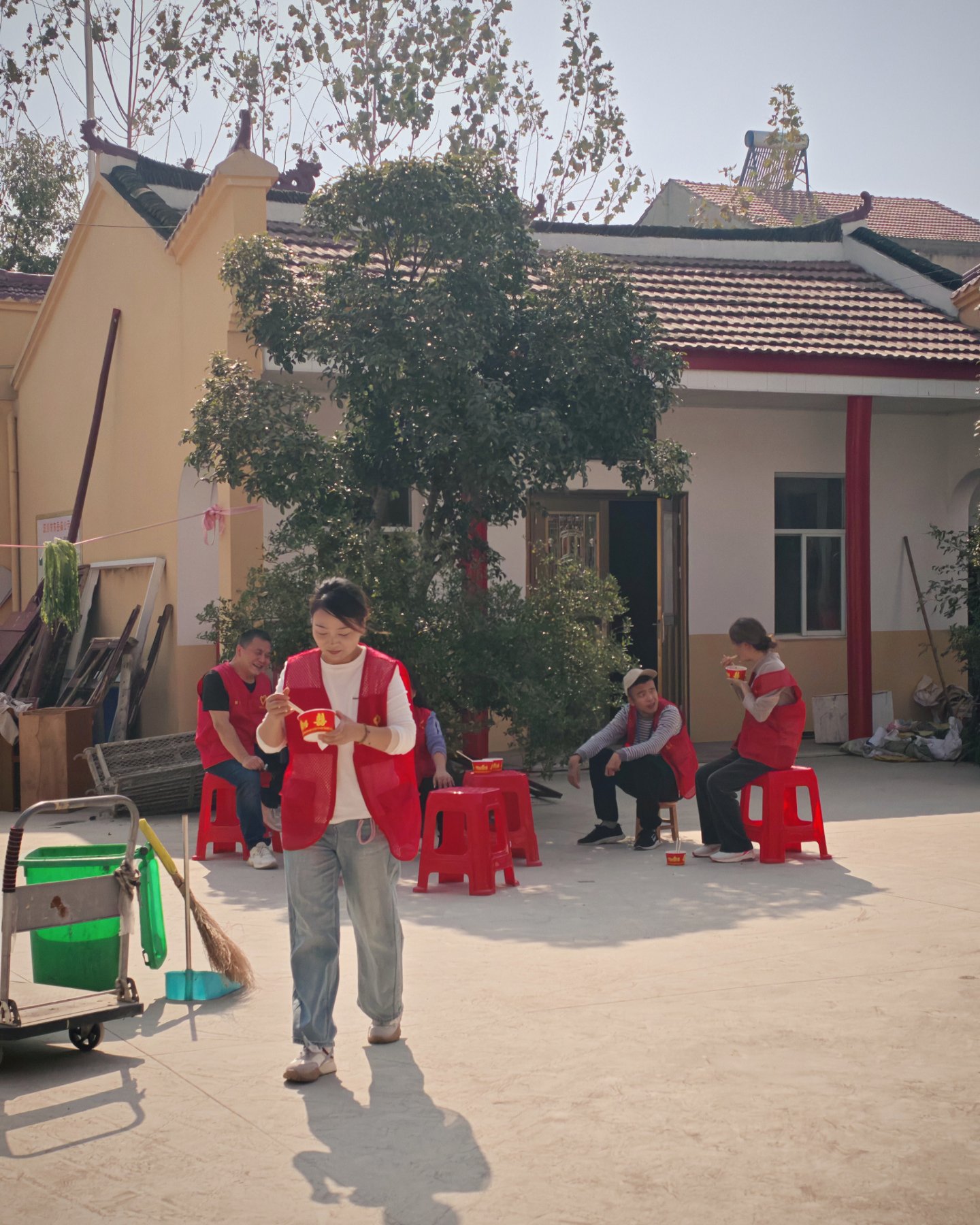 各自寻得坐处,有在院子里暧暧晒背吃饭的,也有三三两两一起的... 主打一个各自自在