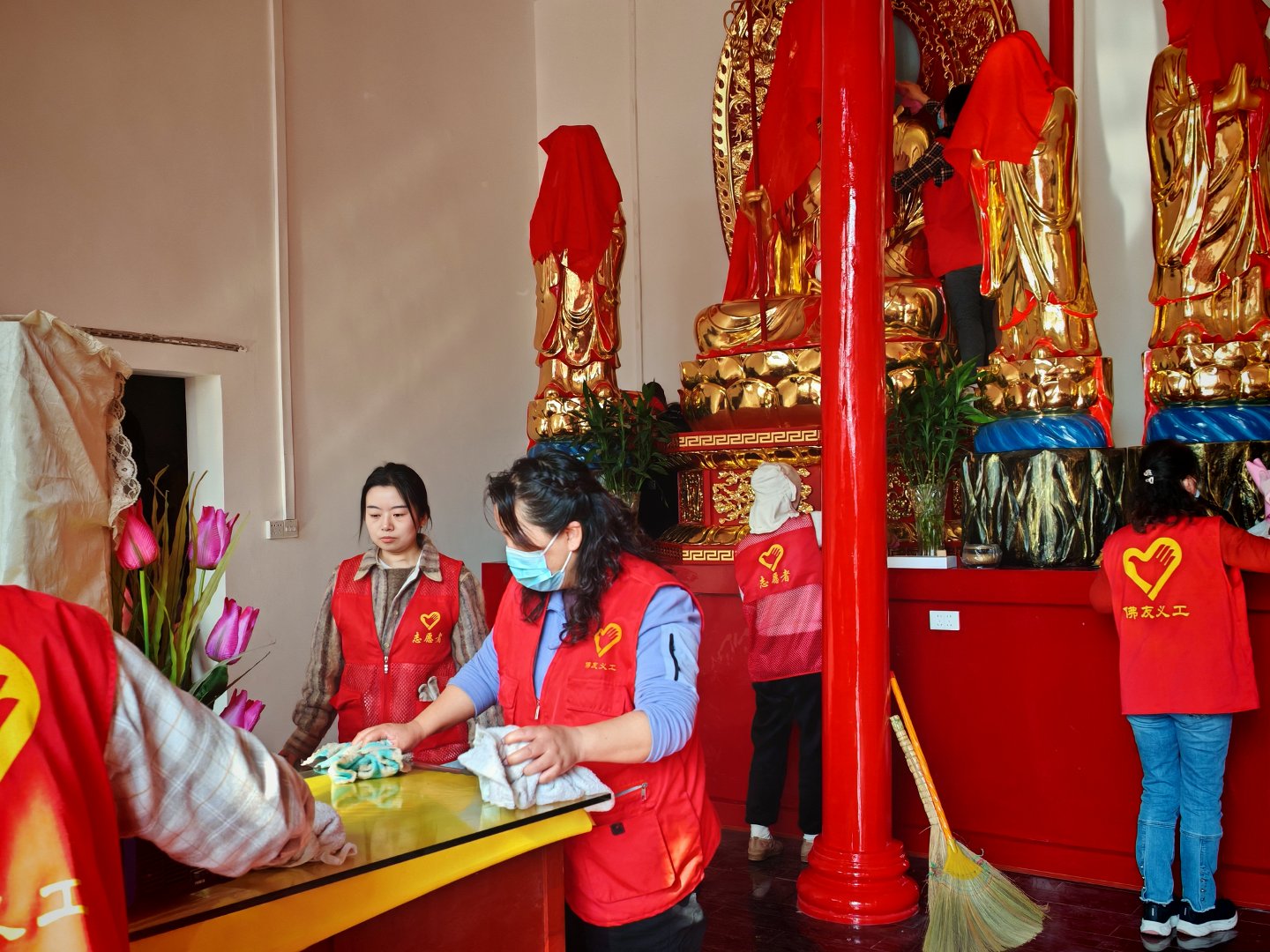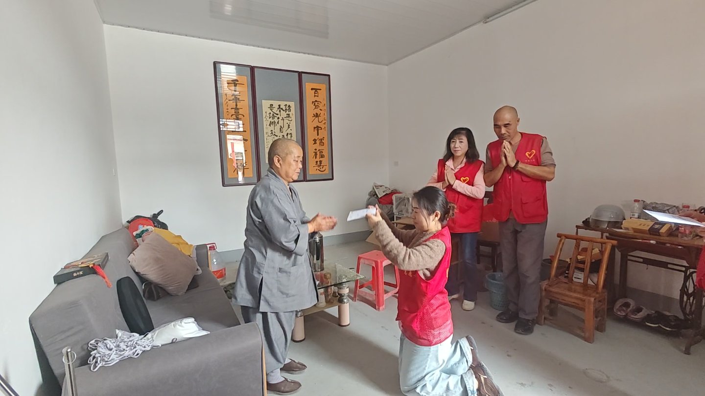 在东岳寺,由守望师兄、允农师兄等4位代表武汉佛友义工团实施的供养之仪轨,随喜随喜