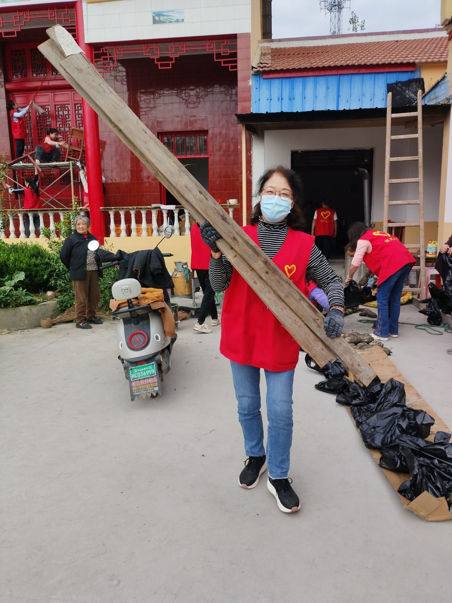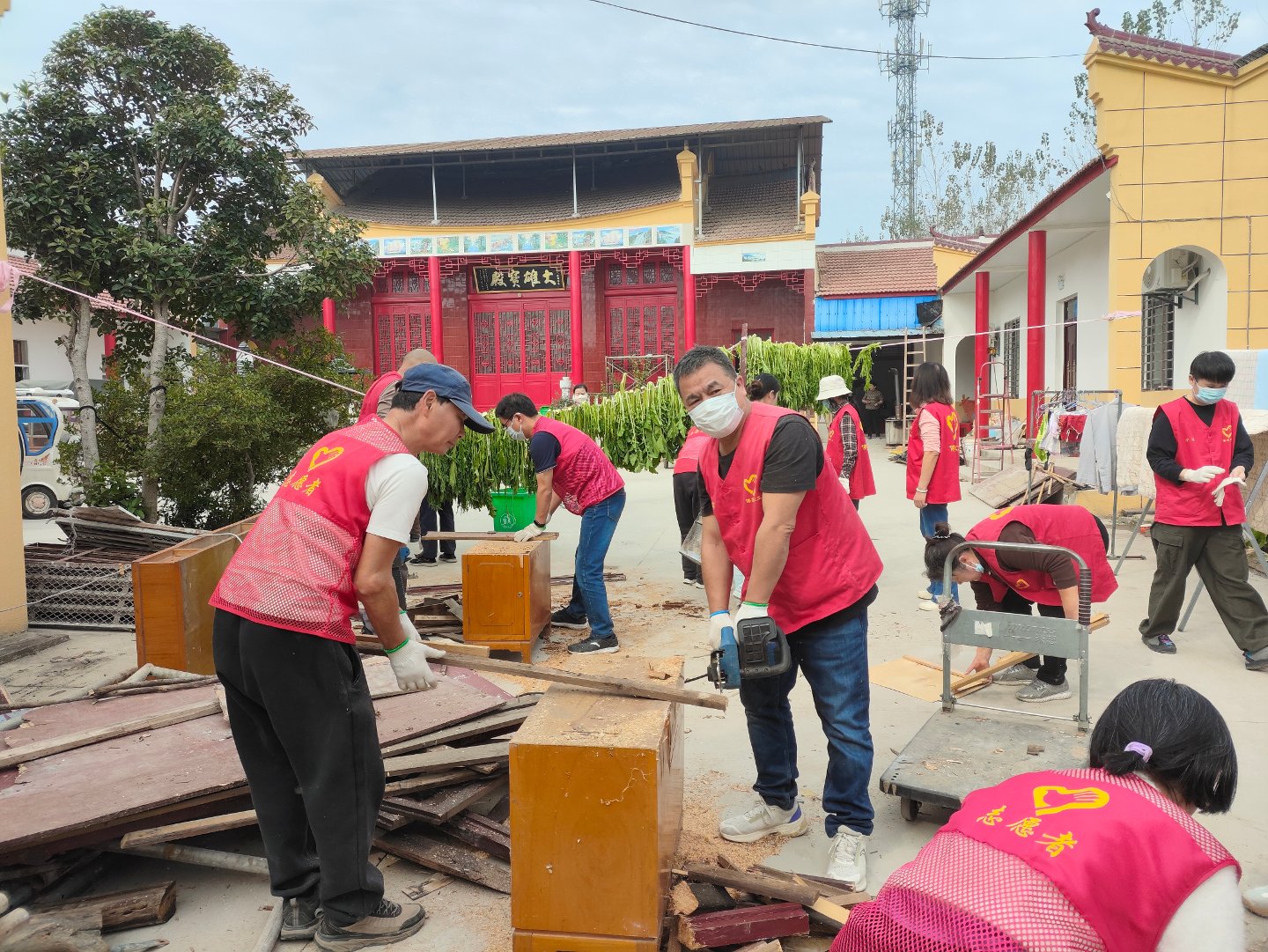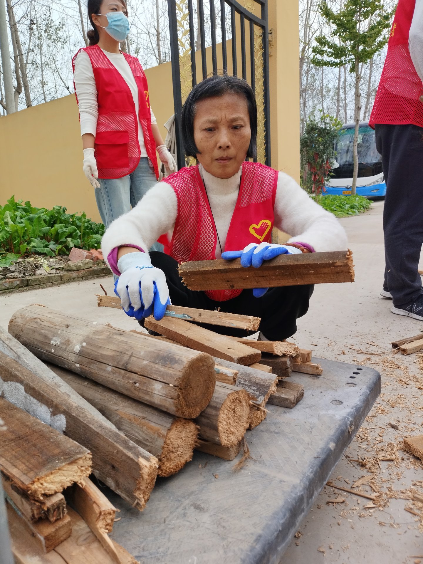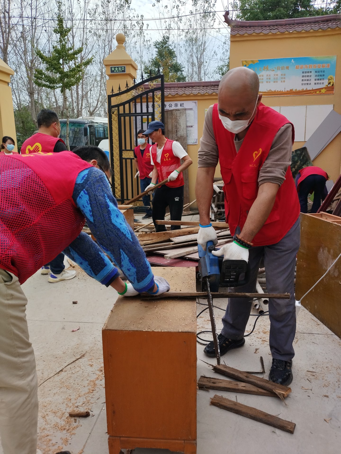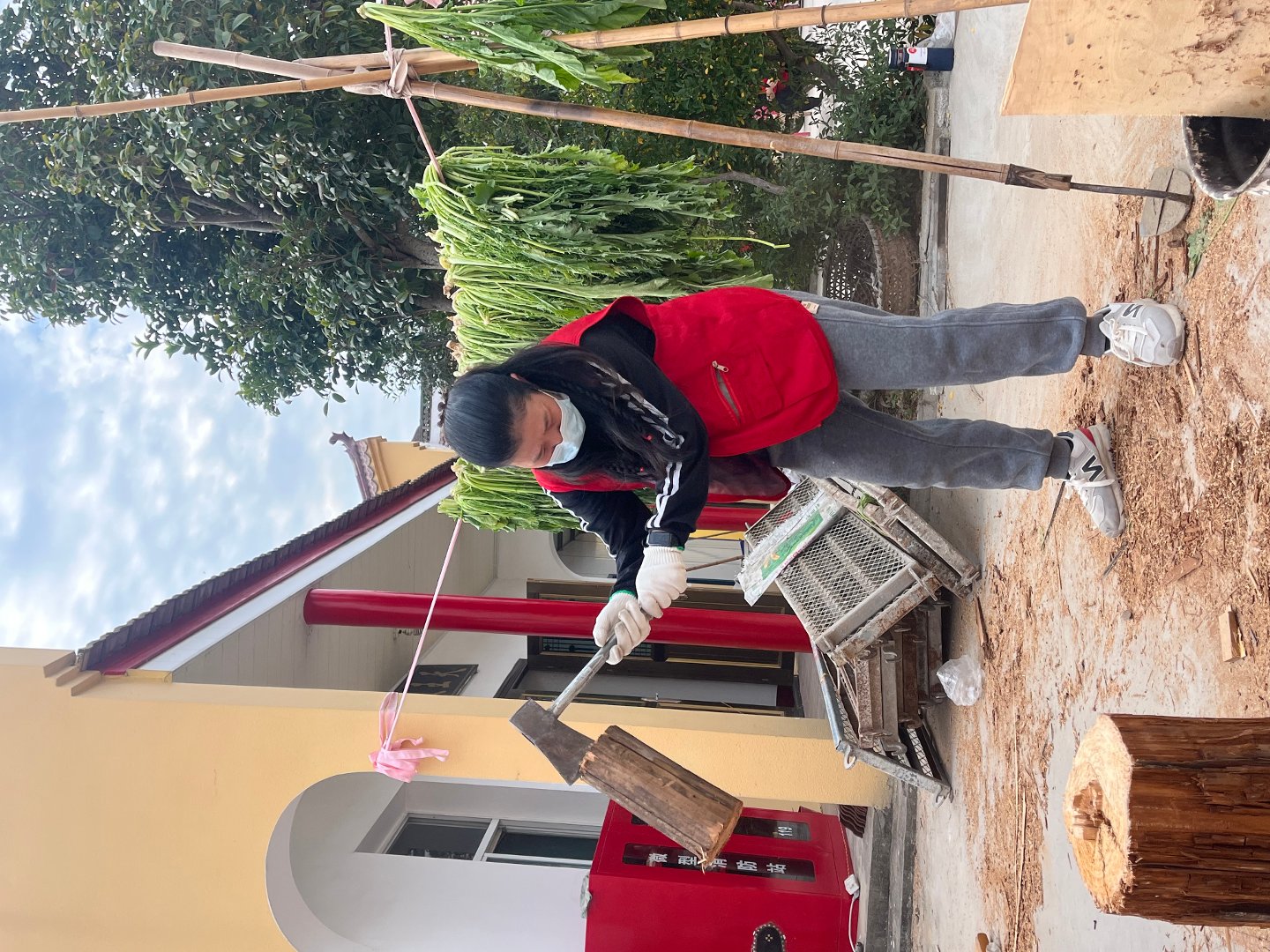 还一件事就是处理寺院门口堆着的一堆可以做为柴火的东西,为此我们特意带了两把电锯前来