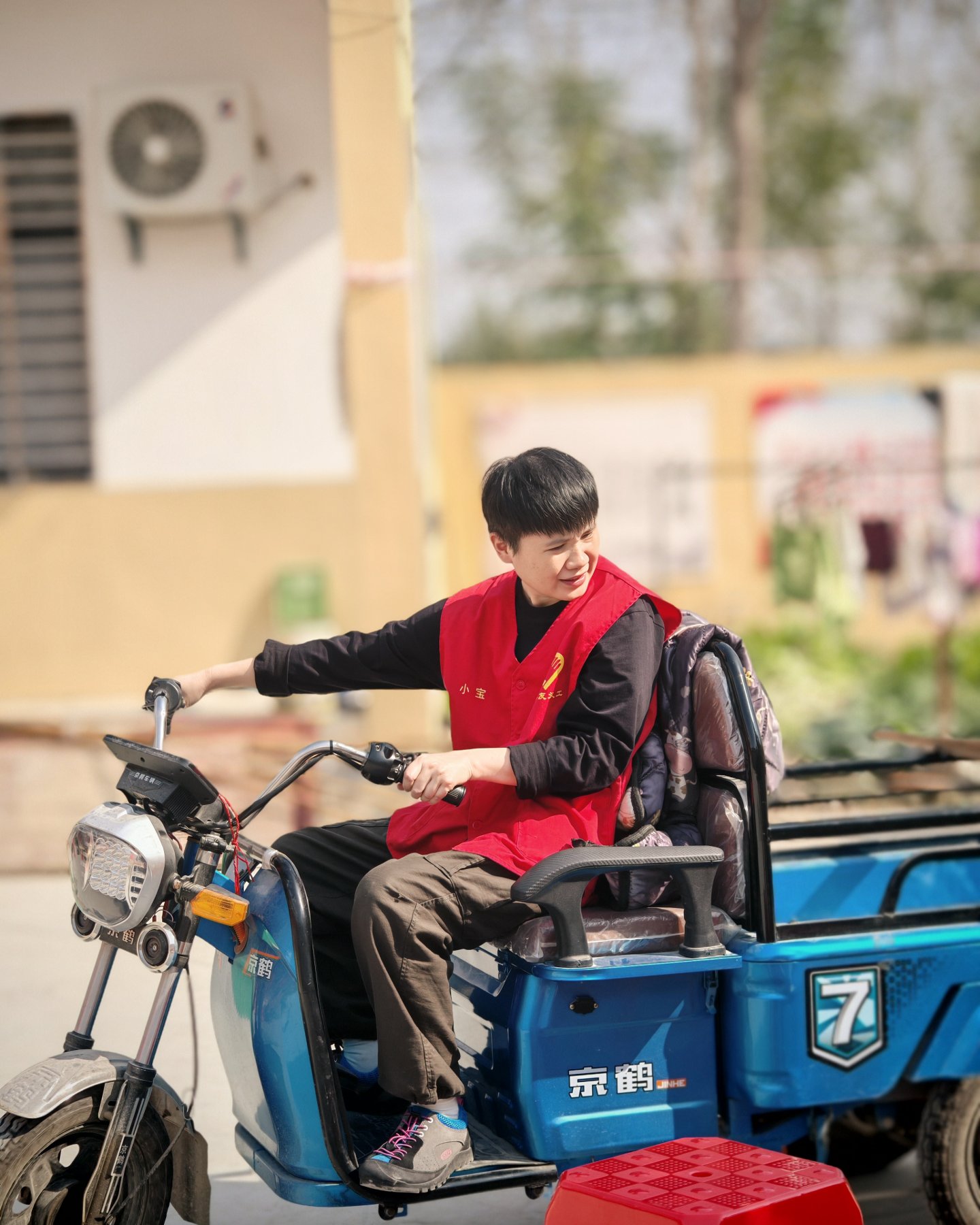 手持A驾照的我与身怀B照的小宝师兄在院子里比赛驾驭电动三轮车