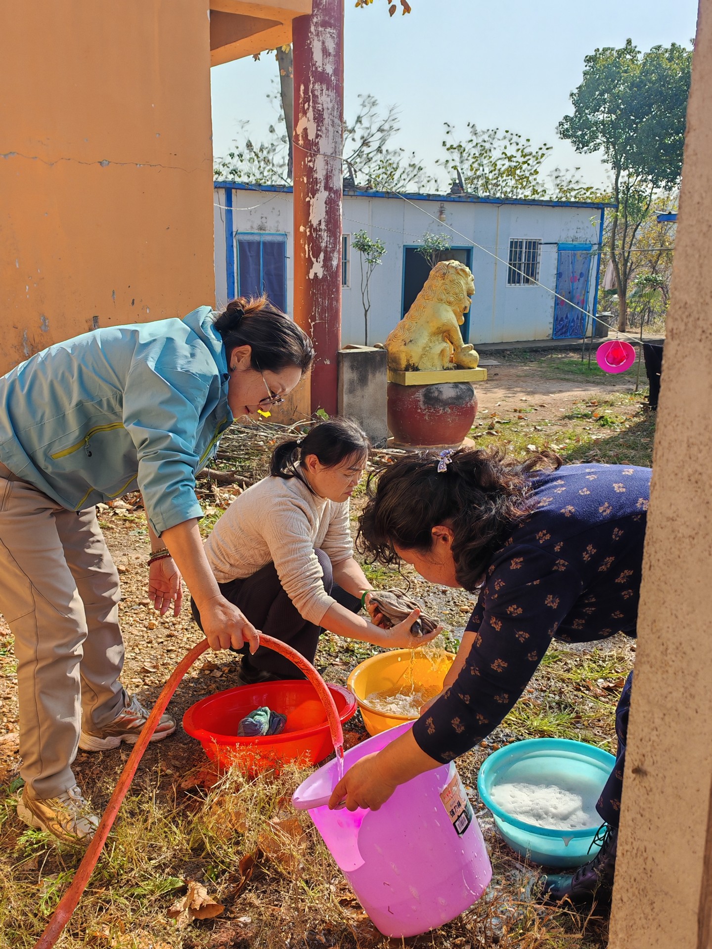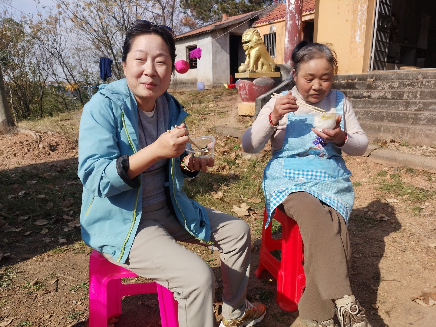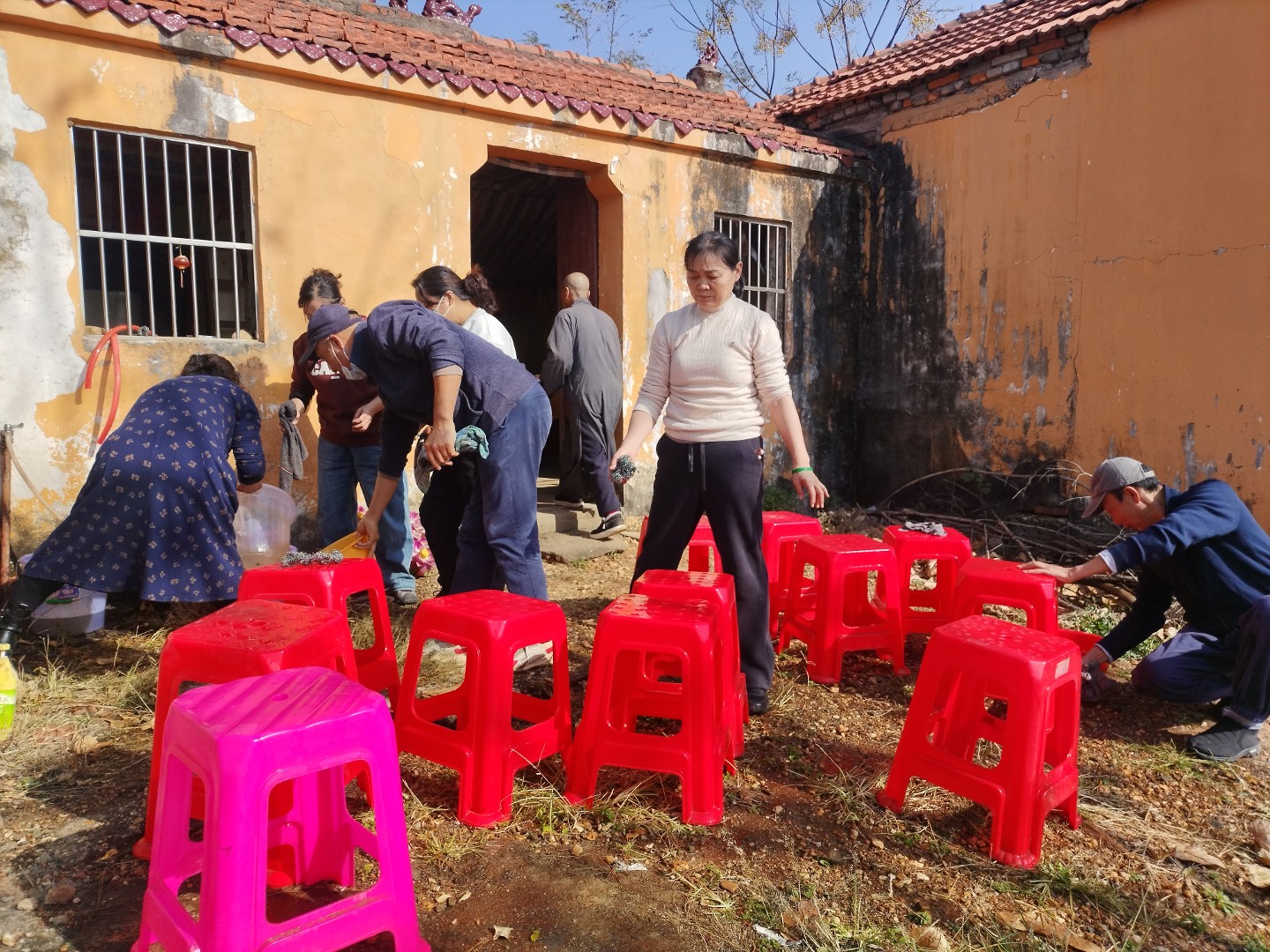 我们预先清洗了十几个凳子,就是为了能坐在温暖的阳光下的院子里午斋