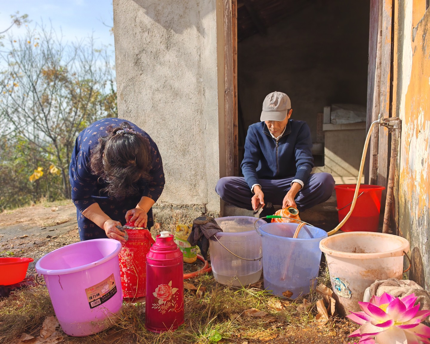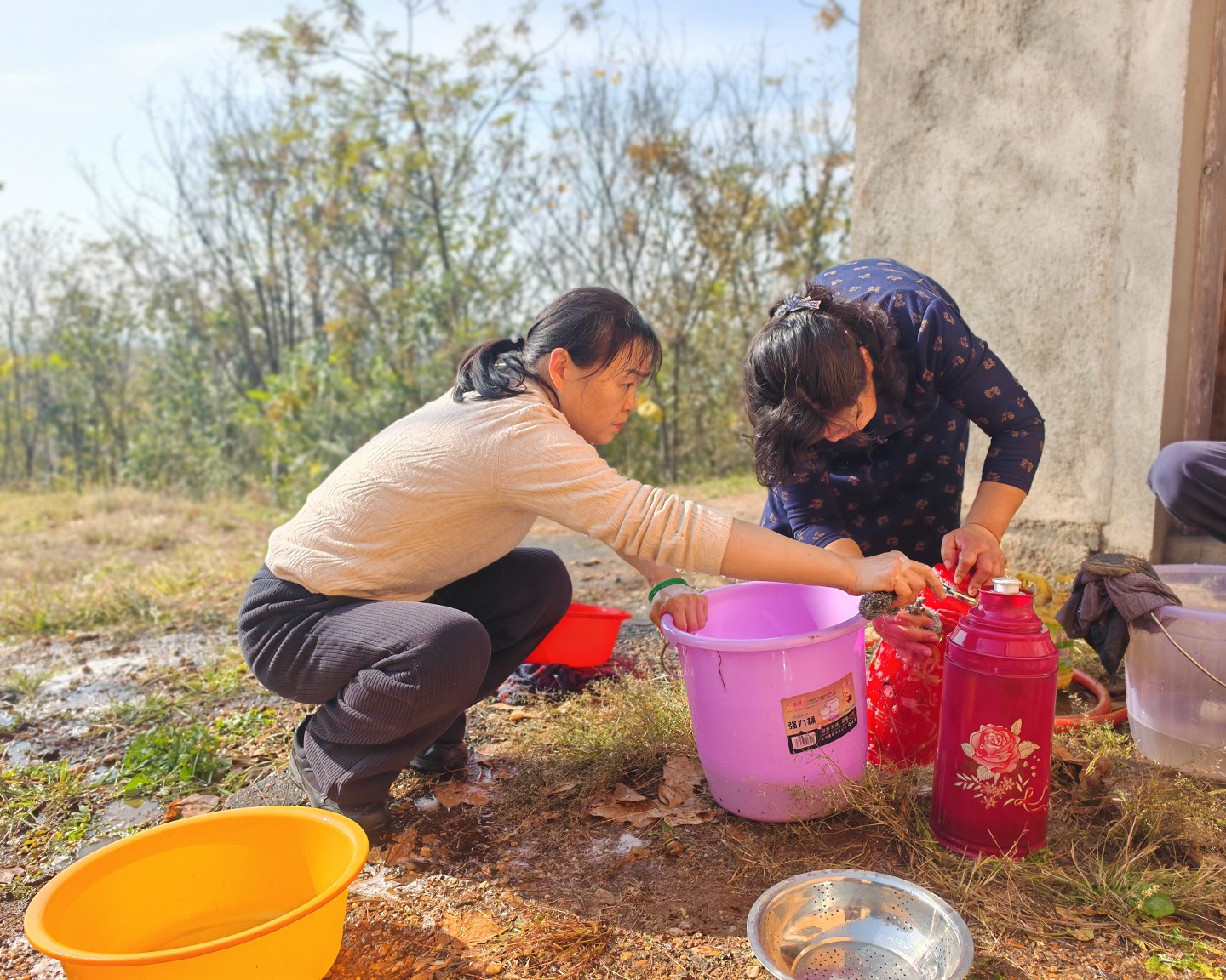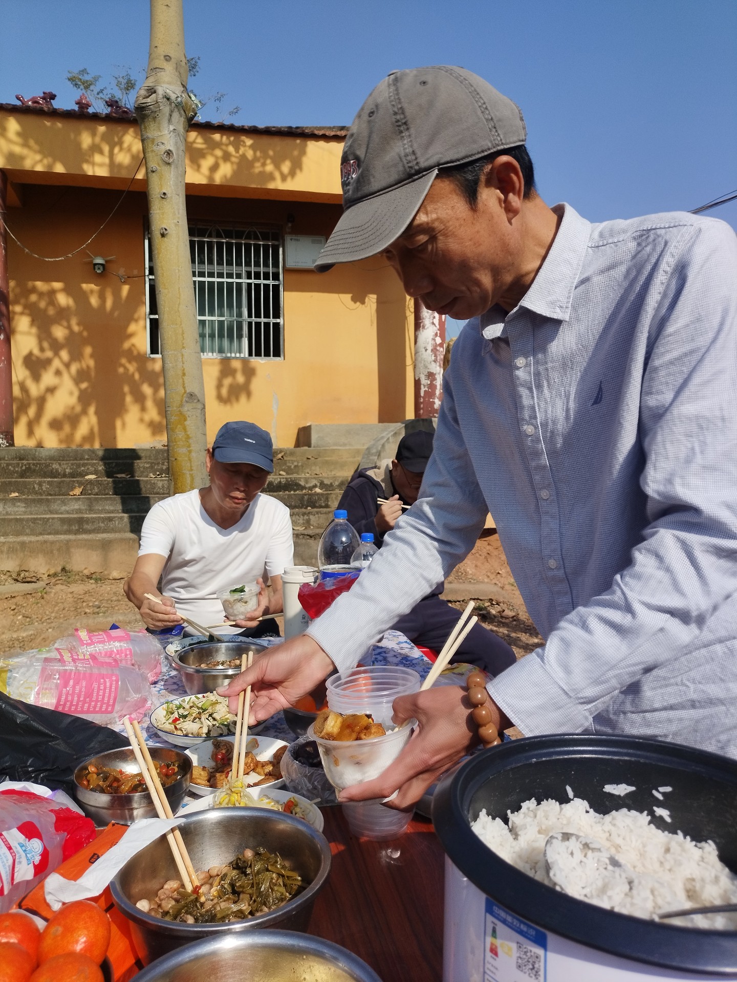 我们预先清洗了十几个凳子,就是为了能坐在温暖的阳光下的院子里午斋