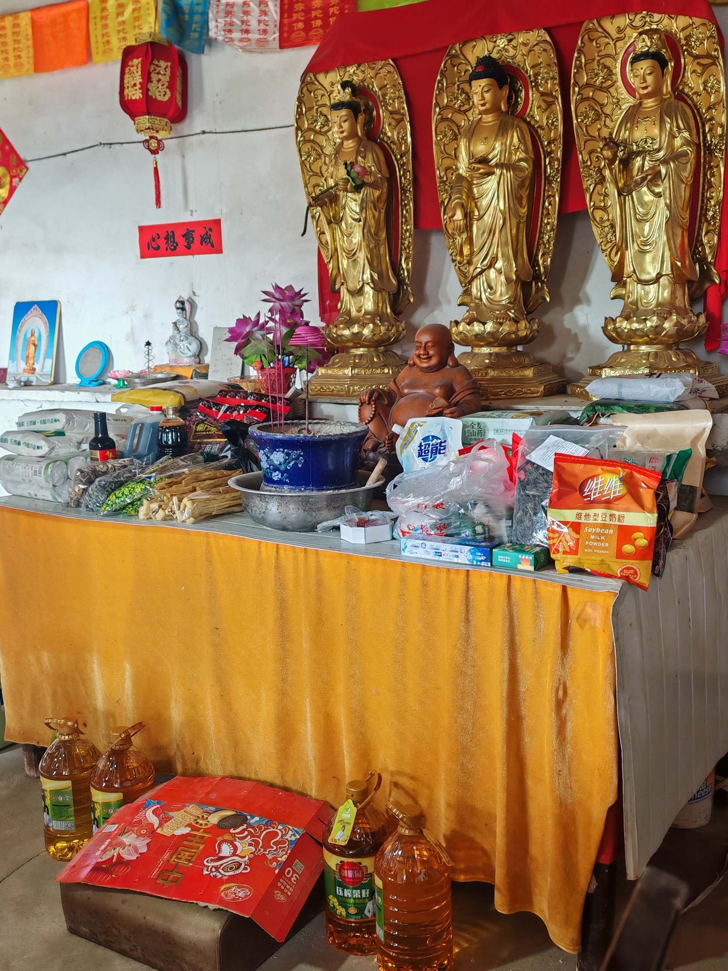 我们到达的时间差不多是上午十点半去了的,一到寺院放下物资供佛、拜佛后,师父泡了许多甜甜的茶招呼大家喝,要大家休息休息