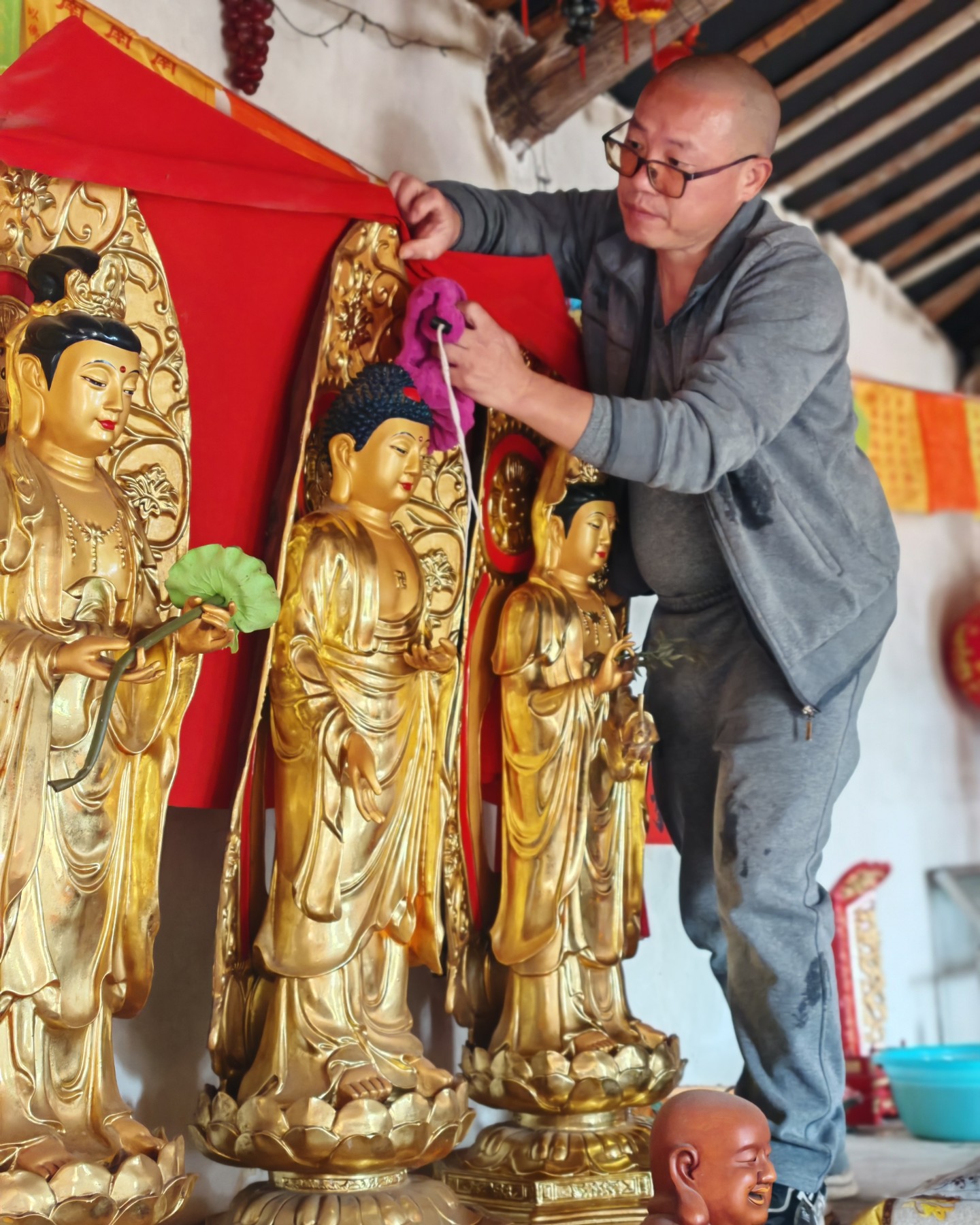 可是,我们怎么能会休息的呢,看着大殿里看上不怎么干净其实是蛮不干净的场景,大家撸起袖子就是一个干字!