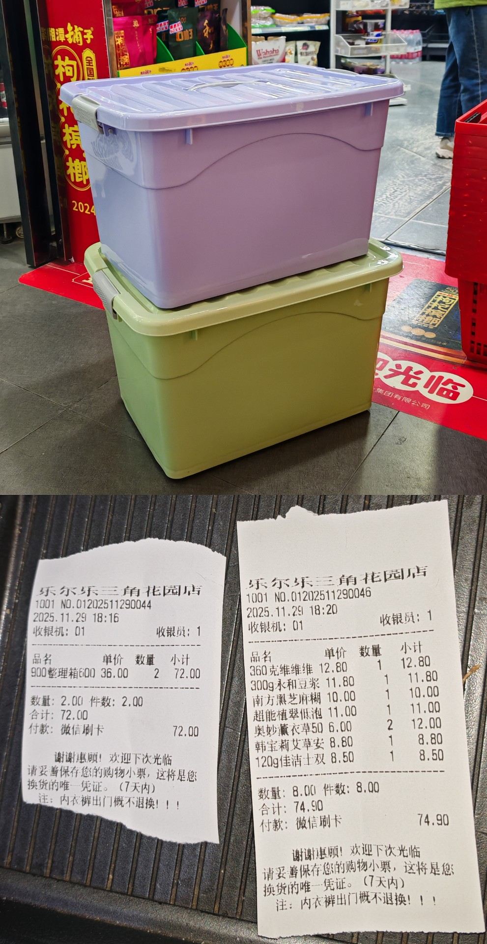 买了两箱食用油,大家分着提着搬运的,空出来的两个纸箱师父舍不得就扔了,也给拎了回来,我们准备大号的收纳箱