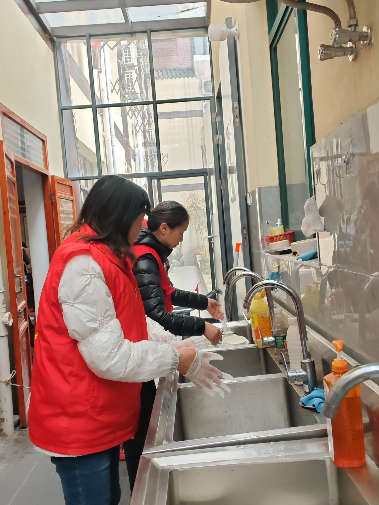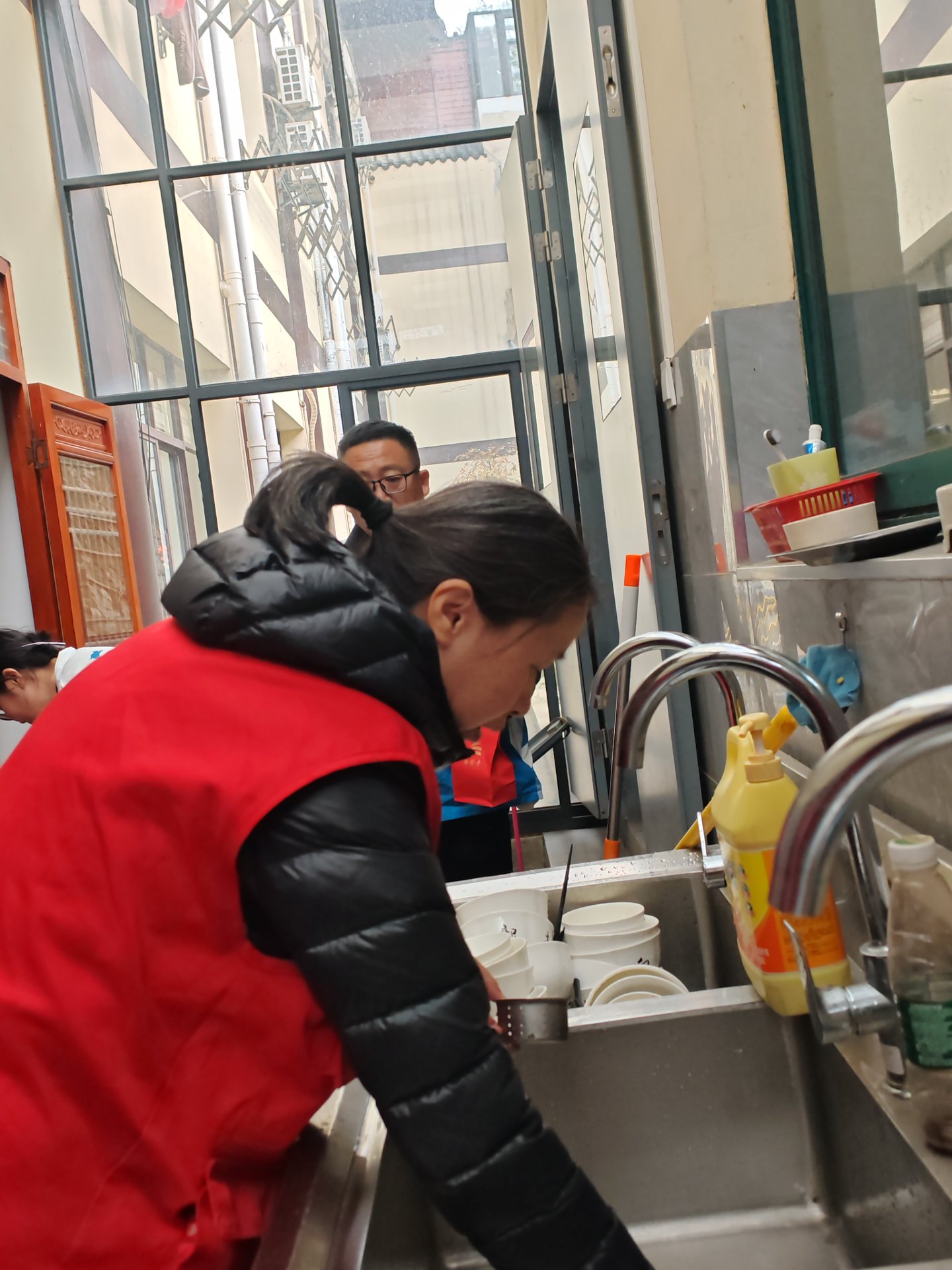 感恩午斋后发心给所有人洗碗的五位师兄