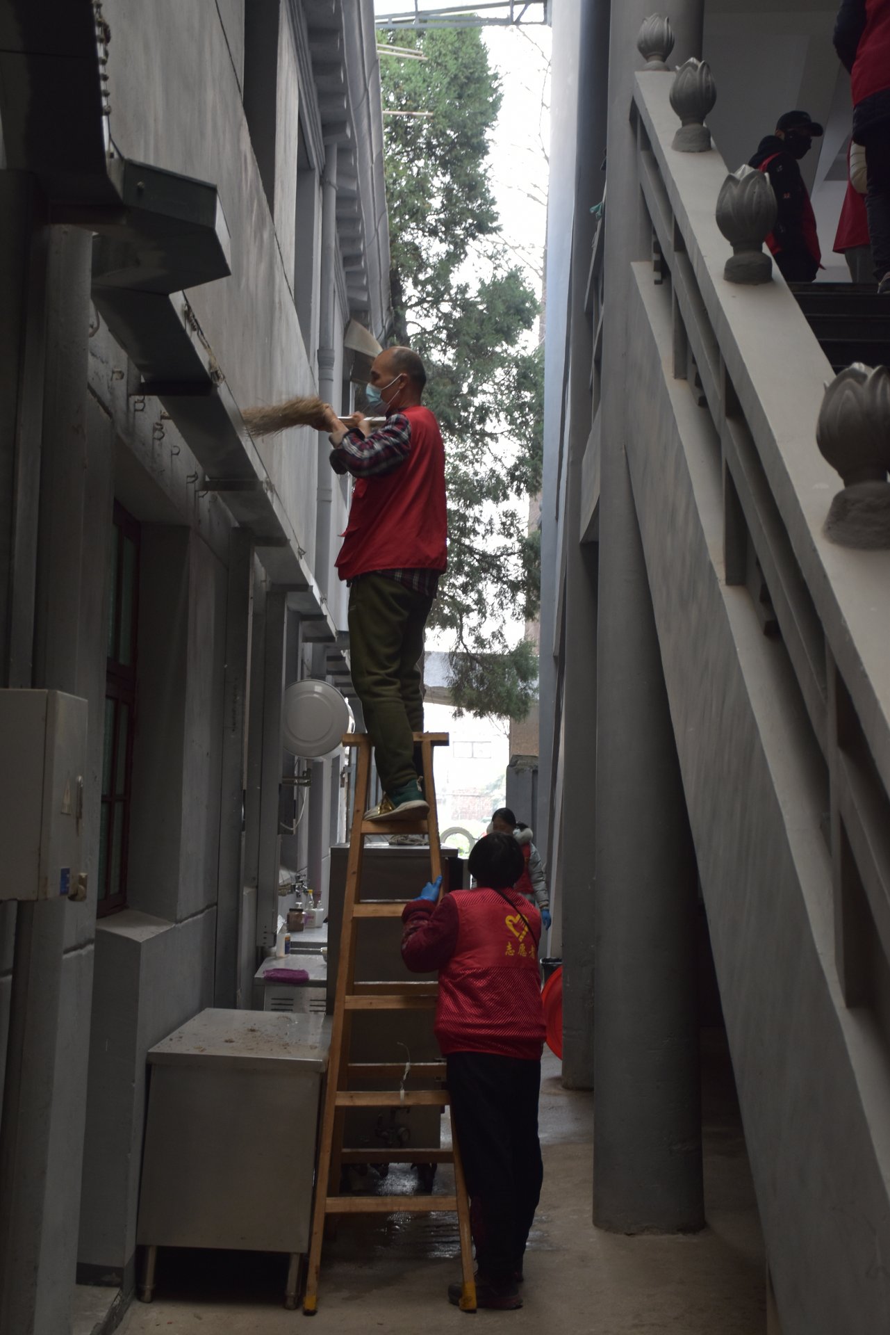 于是一般人都想不到做那上面清洁的而我们的老义工就能