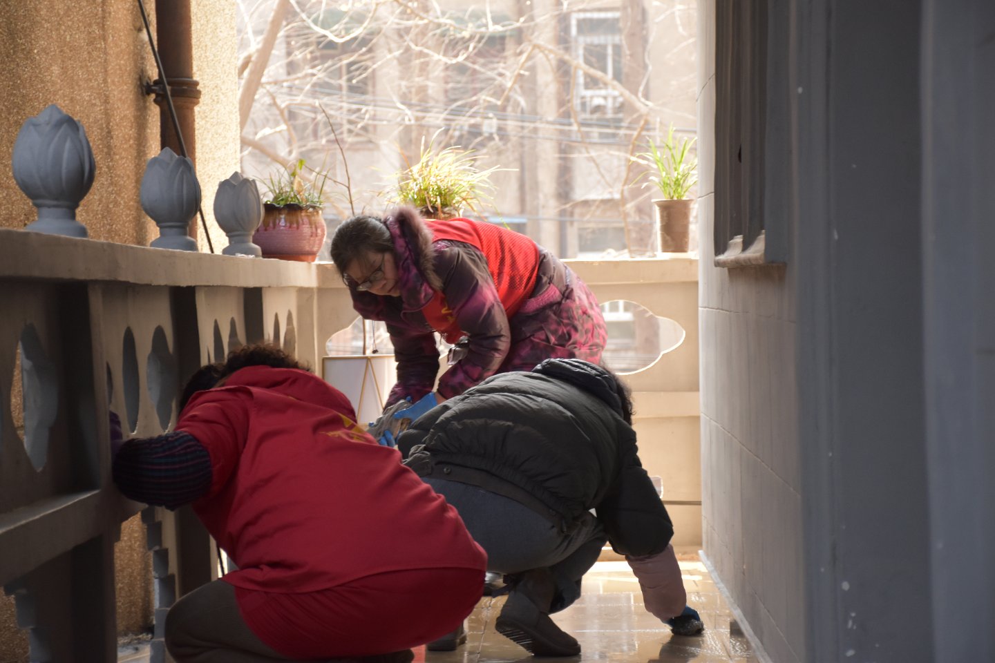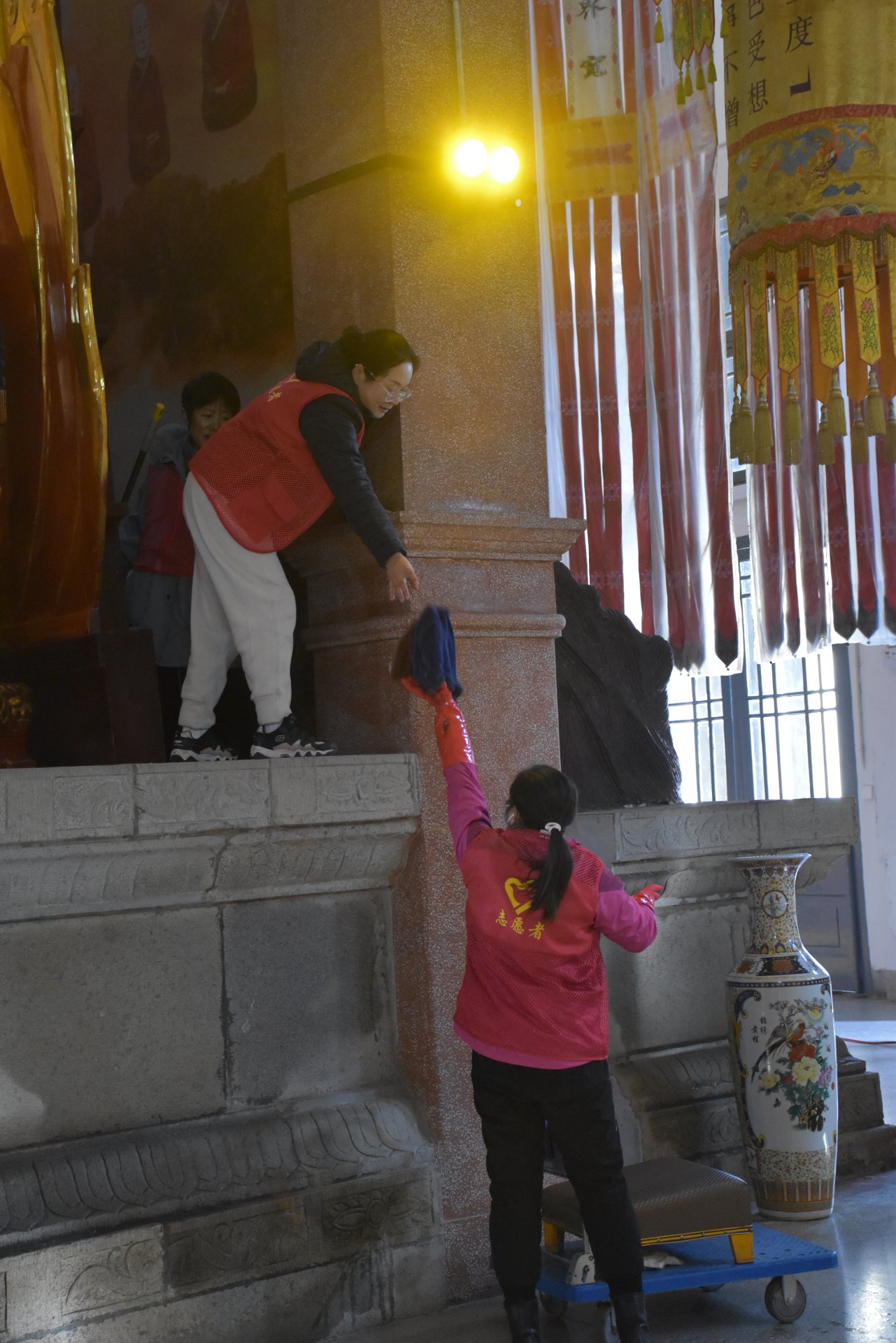 也是由段华冰一位老义工带两位新手上去做的