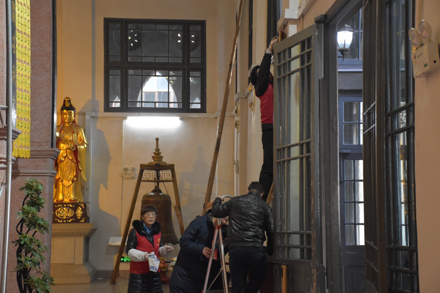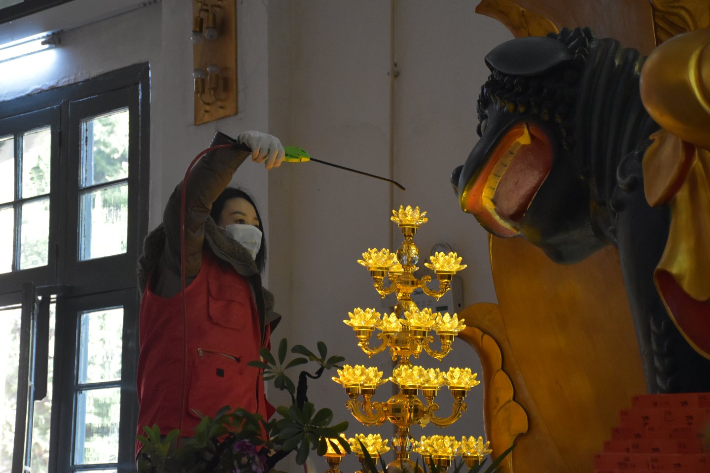 于是要他拆大殿内围转一圈的壁灯下来清洗