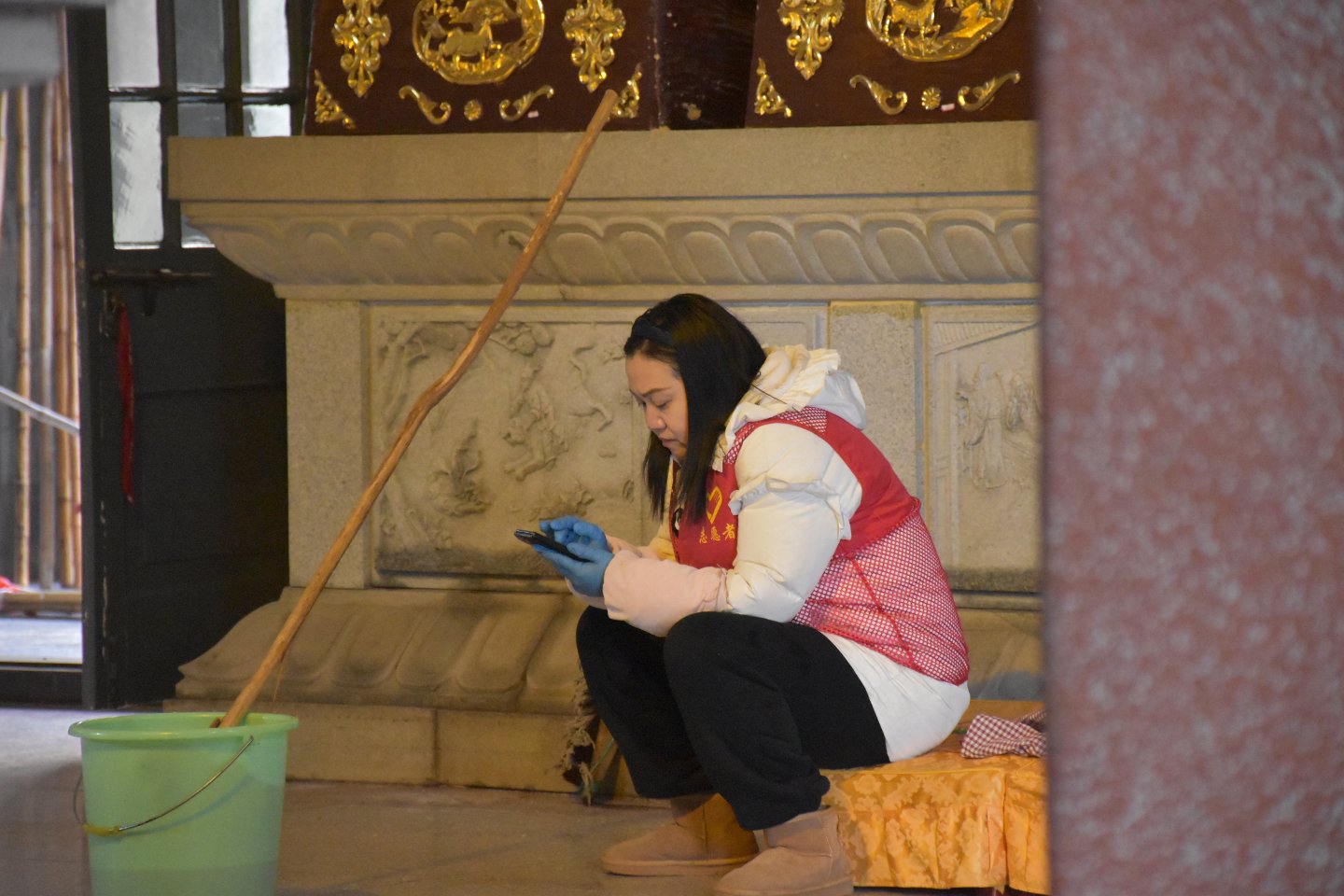 做了一阵子后给我说:以后再来就知道应该穿什么衣服来了的,哈哈 随喜