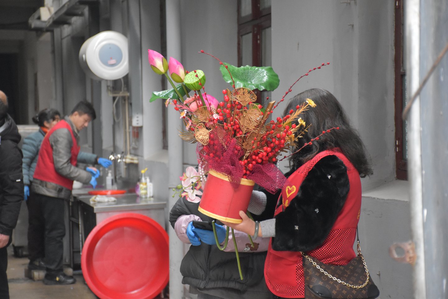 给第一来参加的义工特写镜头
