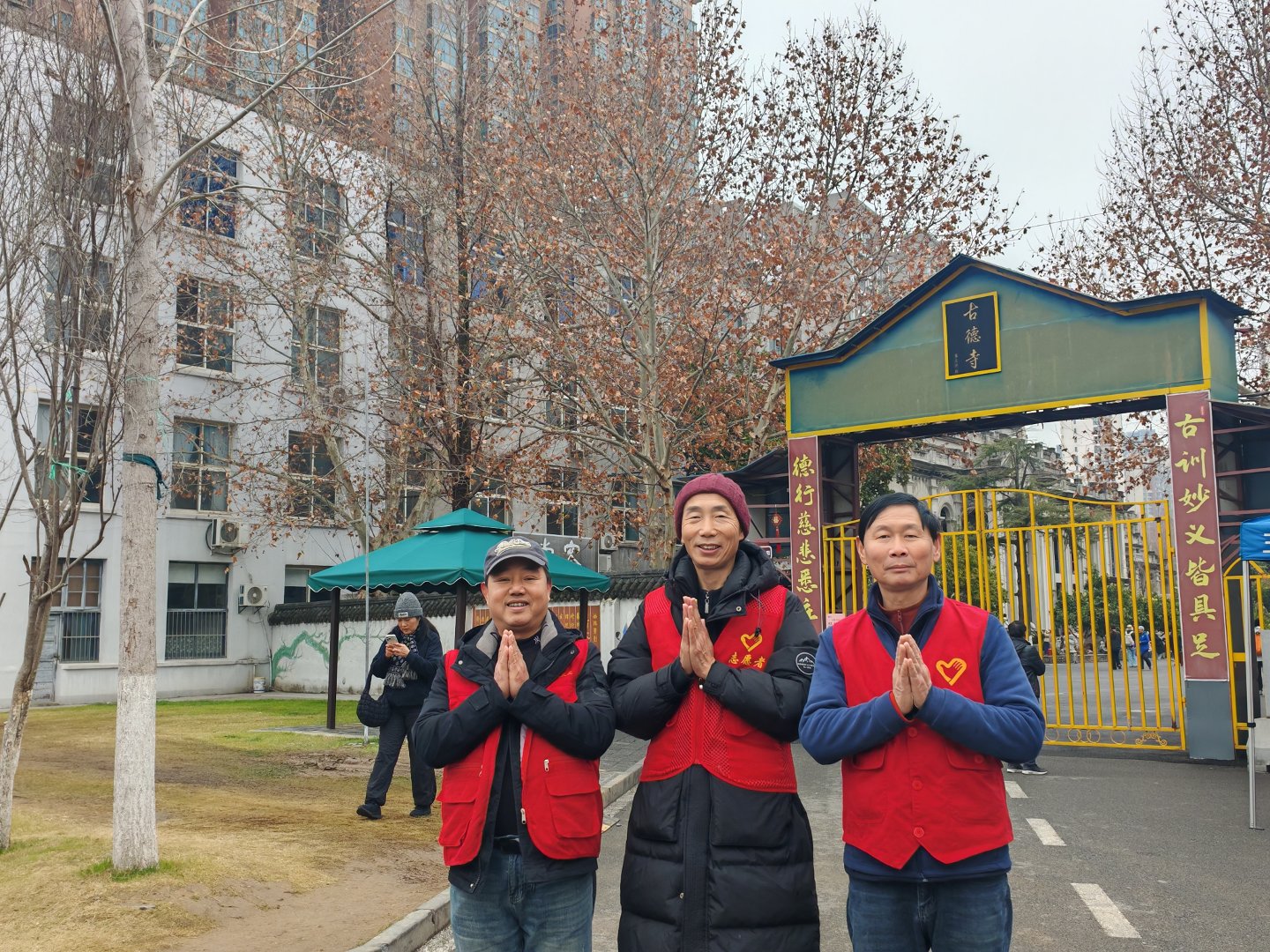 离开古德寺前,我们三个老男将在大门口合影一张的咯
