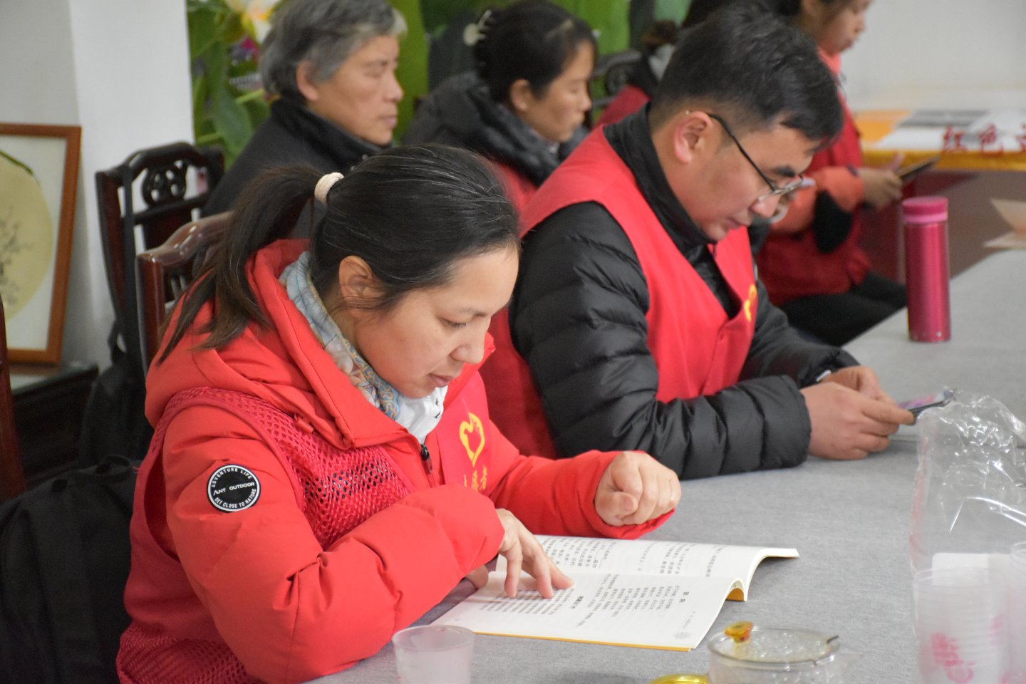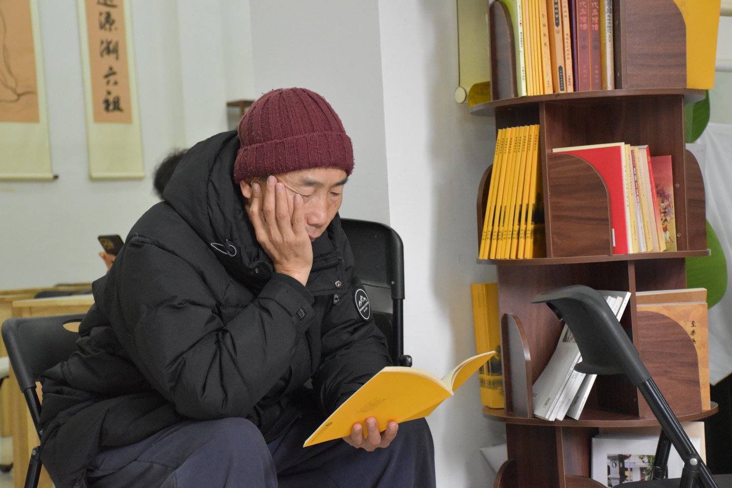 上供仪轨开始前,我们师兄来到了古德寺的一处“学习园地”休息