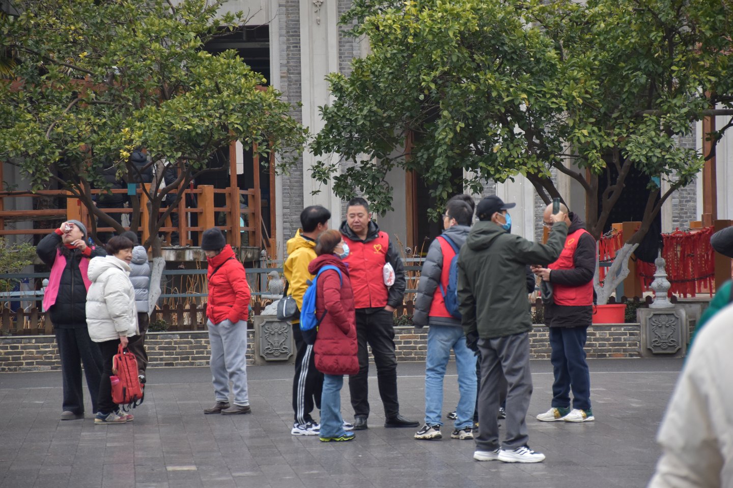 但广场上的热度随着我们鲜艳大红义工服的增多而渐愈加浓盛