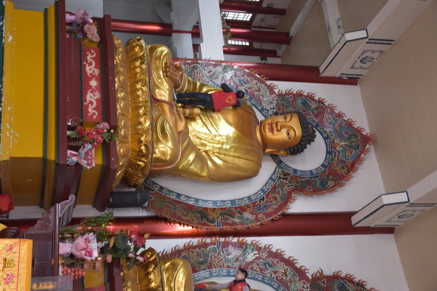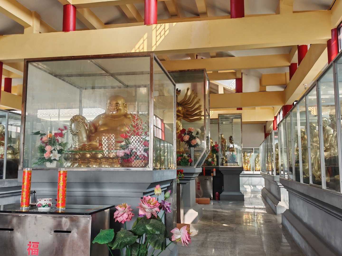 很多很高很大的佛像很久很久没有全面清扫蒙了一层可见的尘灰呈现给我们并且等待着一些因缘的来到以除却这些尘土还我佛身金色矣!